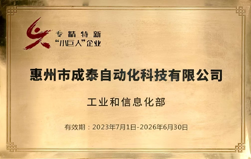 惠州市成泰自動(dòng)化科技有限公司榮獲 2022年“專(zhuān)精特新中小企業(yè)”認(rèn)定