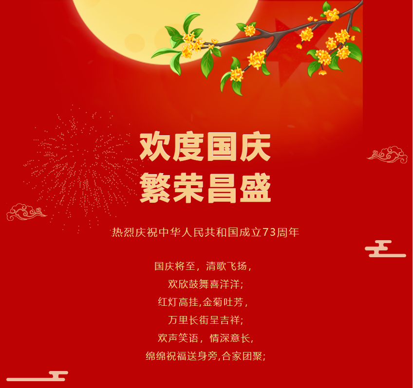 熱烈慶祝中華人民共和國成立73周年國慶放假通知一二三四五六日26九月27初一28初二29初三30初四1國慶節(jié)2放假3放假···