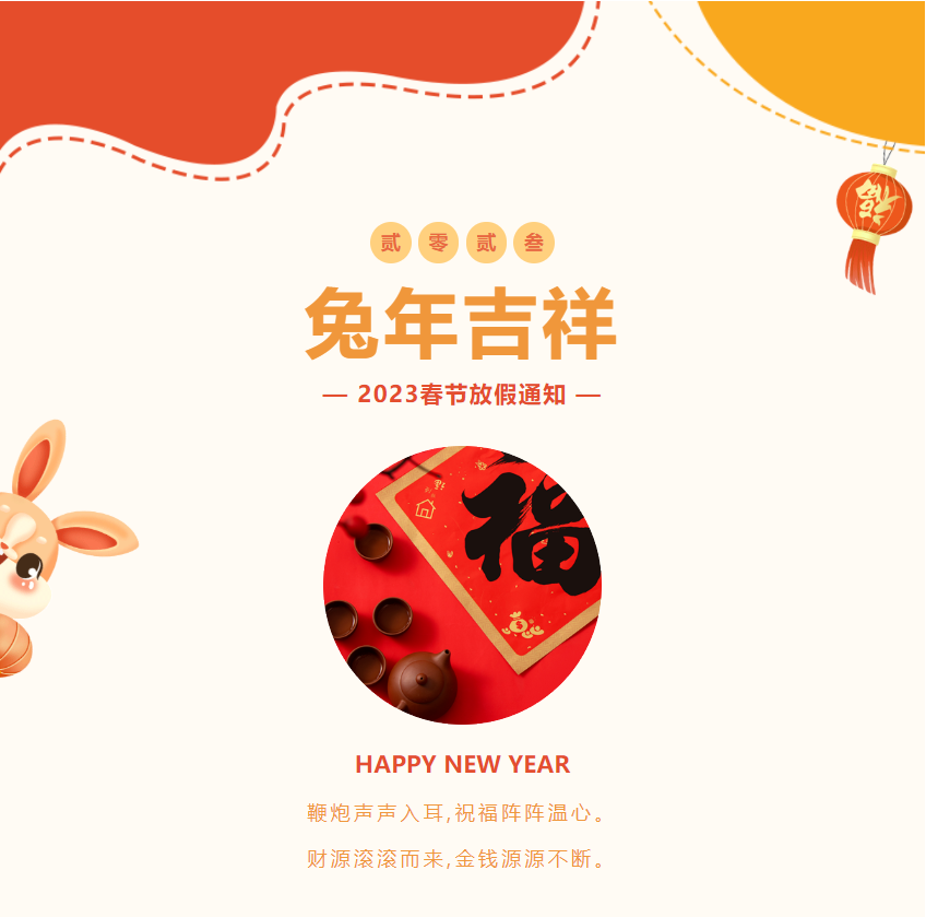 放假通知2023年春節(jié)放假通知2023年春節(jié)即將來臨之際,根據(jù)《國務院辦公廳關于2023年部分節(jié)假日安排》并結(jié)合公司實際···